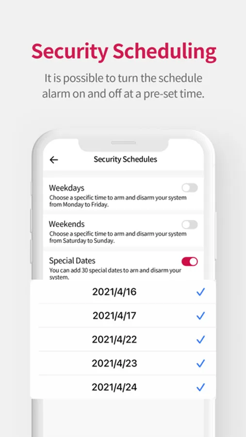 * Setting on and off the Security Modes for Individual Cases (Away or Home).
