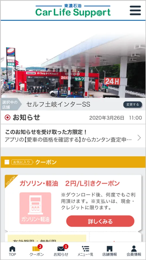 愛車のトータルサポートなら東濃石油株式会社のアプリ「東濃石油カーライフサポート」にお任せ下さい!