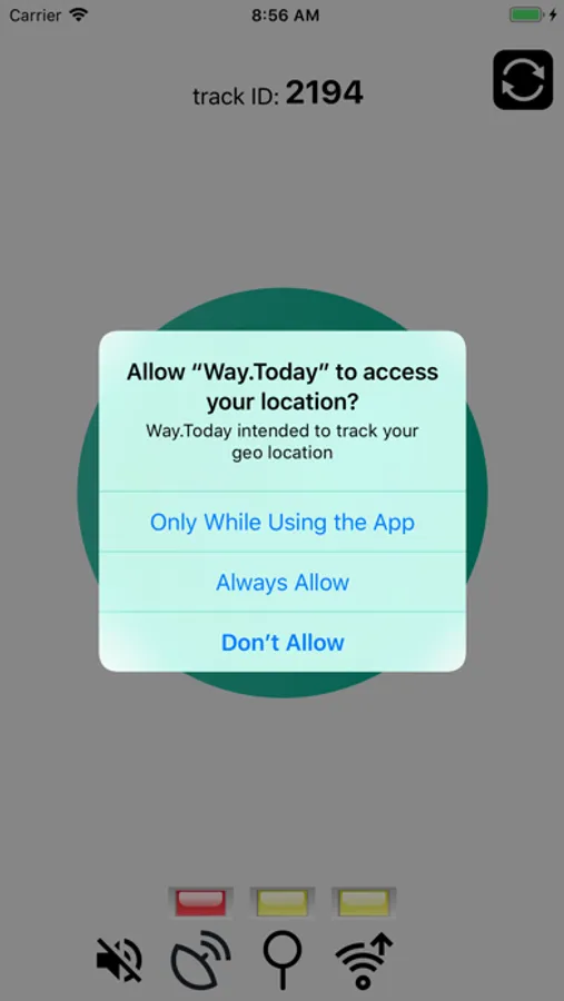On the first launch Way.Toady gets randomly generated ID and waits for big button in the center of the screen to be tapped to start recording and transmitting the device position. The tapping the same button another time stops the recording and transmitting.