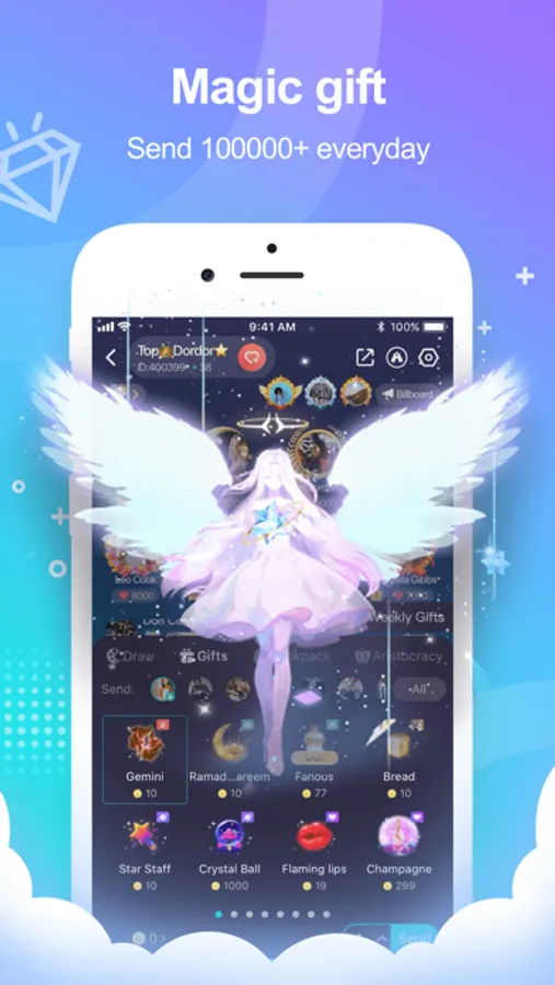 Users can advance to higher levels by sending gifts,and higher levels will be able to unlock more rewards
