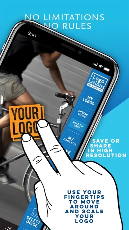 2. Placing your logo: Simply drag it wherever, scale it up or down with a 2 finger pinch/zoom motion