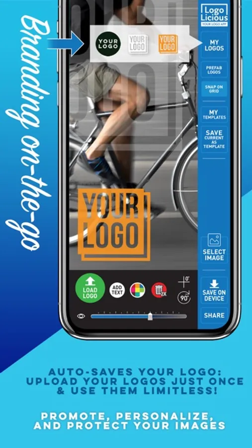 Simply load it, drag it, and drop it on top: LogoLicious is the #1 mobile branding tool. A photo watermark app, 'logo adder' and 'text over photo' all in one - that allows you to customize your photos on the go. Apply your branding on the fly.