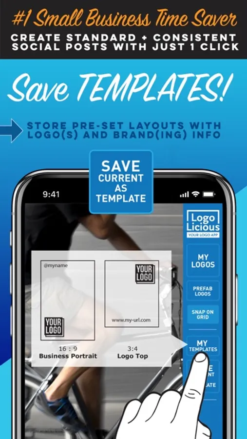 3. Hit the 'Save current as template' button when done > Next time you use the LogoLicious app, no need to add your logo first, just load your previous template with one click(!) hassle free!