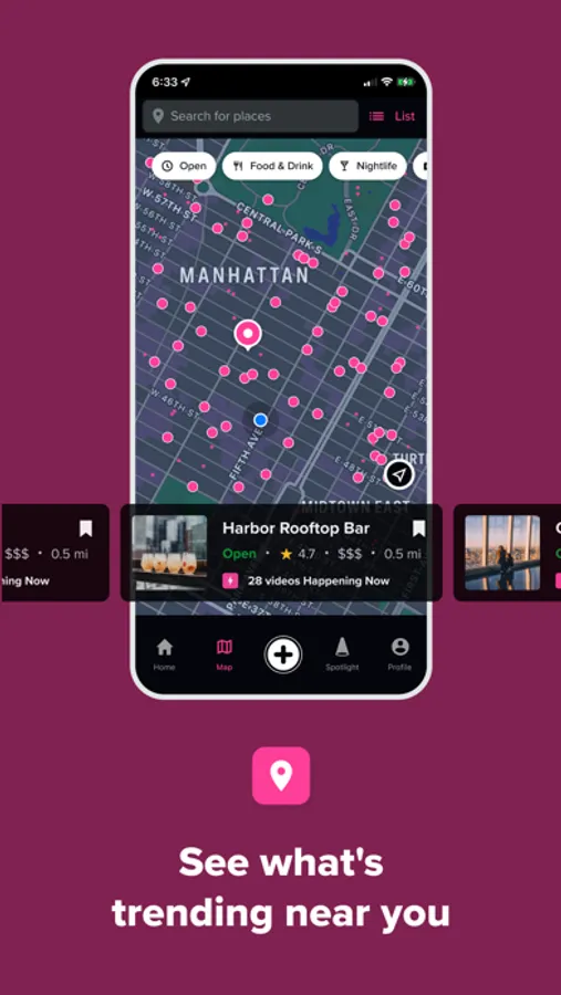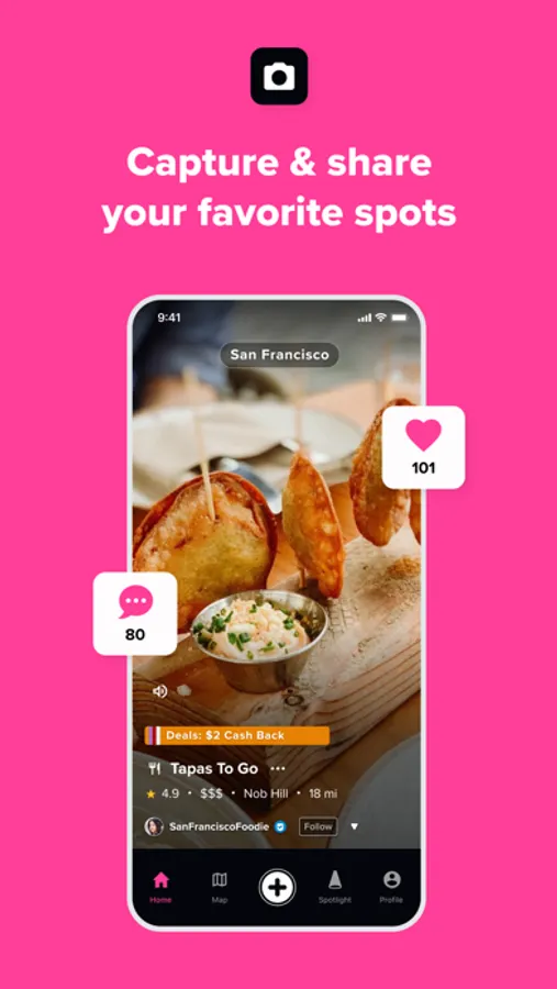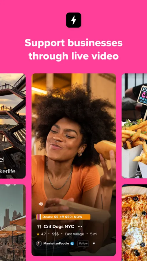 Easily navigate the best dining, nightlife and experiences your city has to offer through short videos. See what's happening now near you and around the globe. Instantly find exactly what you’re looking for by filtering by hashtag, distance, cuisine, feature, price, and more.