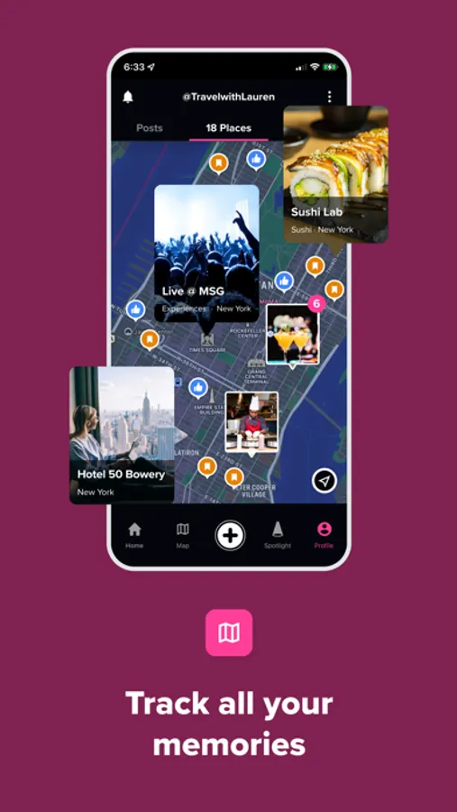 Capture all of your experiences on a personal travel map, and share with others as recommendations.