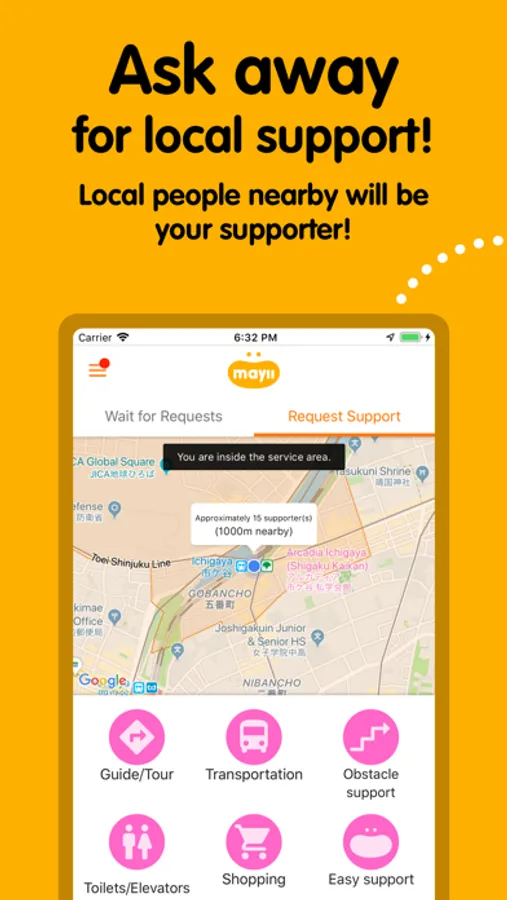 When you want a bit of support in Japan, use this app to call local people nearby.