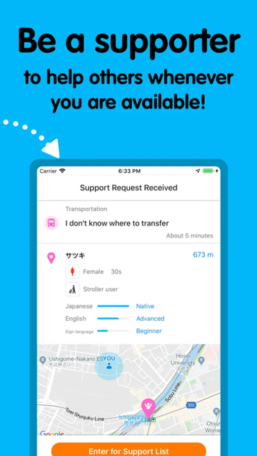 ・Please note that this app will not guarantee 100% match. If you can find the supporter depends on the situation at the moment.