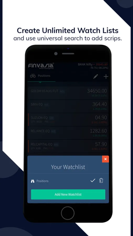 • Various order types : Regular, Stop Limit, Market, Limit, Stop, Cover, Bracket Order more