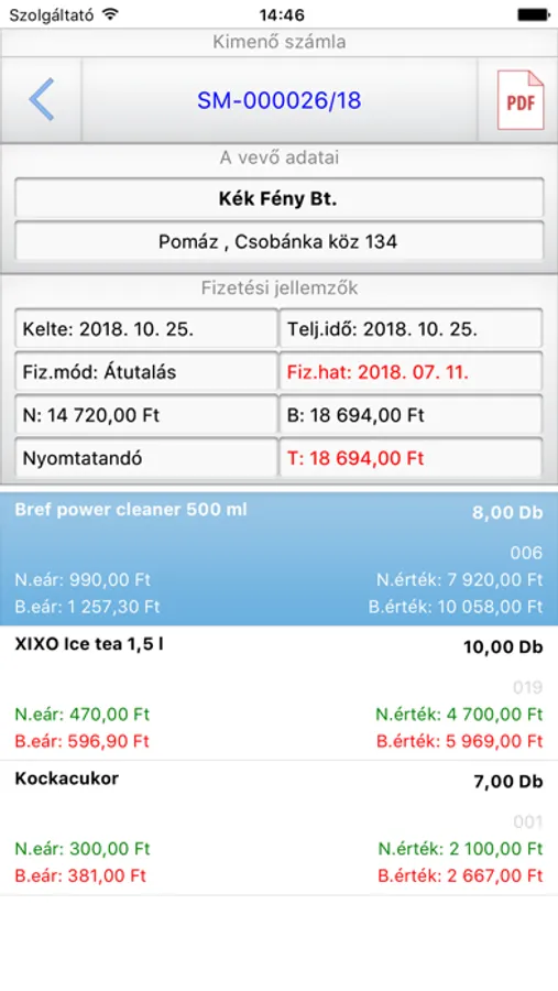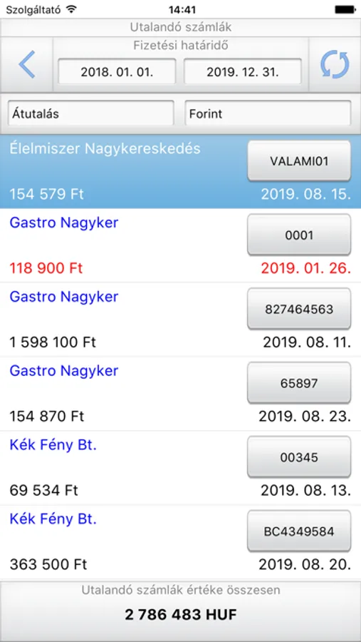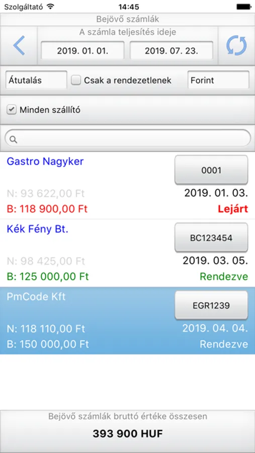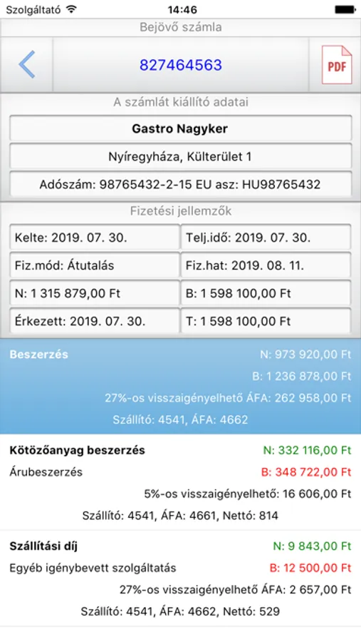 -List of incoming and outgoing invoices with detailed information and attached document