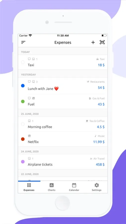 The app can prepare smart reports, which can be generated fully on your device and without sharing your data with third-party services. Each expense report can be in different file formats, which makes access to it more scalable than you have before. Reports can contain expenses with different currencies, which give more scale in analyzing your money productivity.