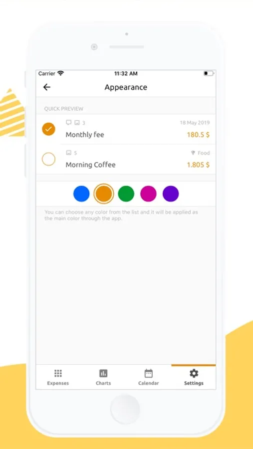 Colorized your expenses depending on your mood your time of day. Change the main app color as you wish.