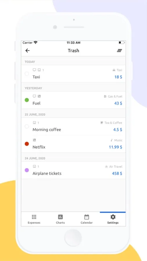 Removed expenses moved to the trash folder, wherefrom it can be restored or fully removed.