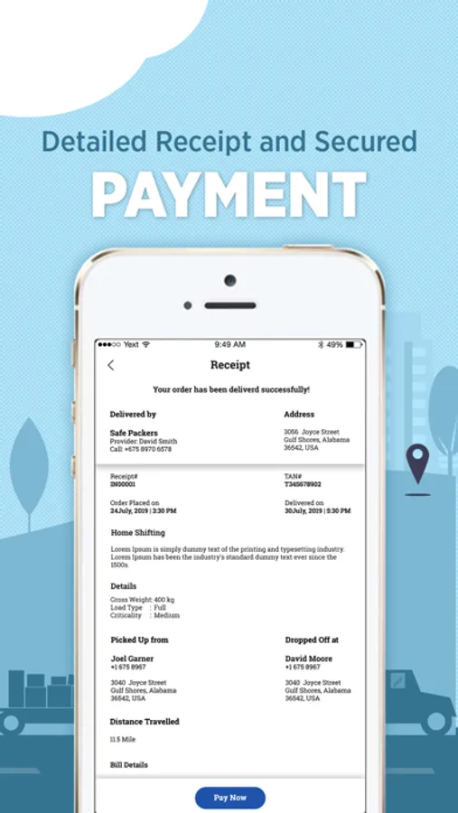 Google APIs are used for quick and accurate entry of addresses. Apart from visual assistance it also provides the best route and miles between source and destination locations.
