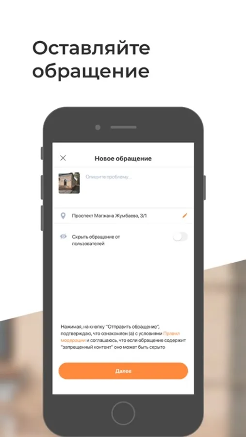 2. ОБРАБОТКА: обращение публикуется в приложении в общем списке обращений и отправляется на обработку партнеру в данном регионе.