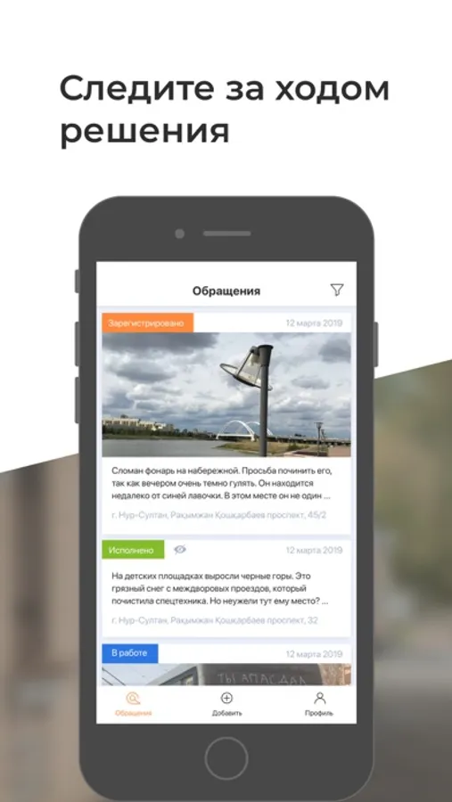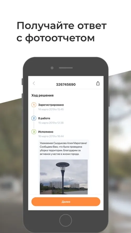 3. РЕШЕНИЕ: уведомления со статусом заявки отправляются по e-mail и внутри приложения, а также отображаются в разделе “Мои обращения“.