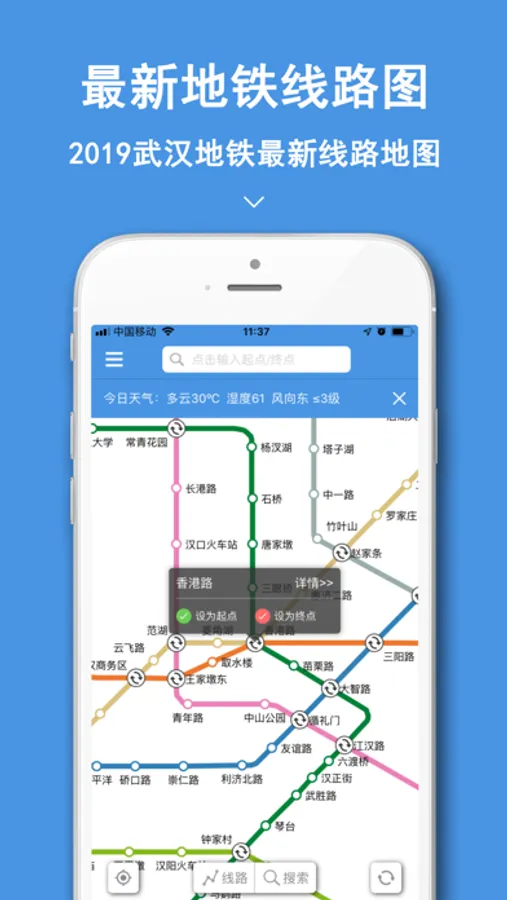 武汉地铁App,一款专业地铁出行智能助手。拥有2019最新地铁线路图,查询推荐最优换乘线路,最新站点信息全掌握(含周边)等地铁出行信息和功能。