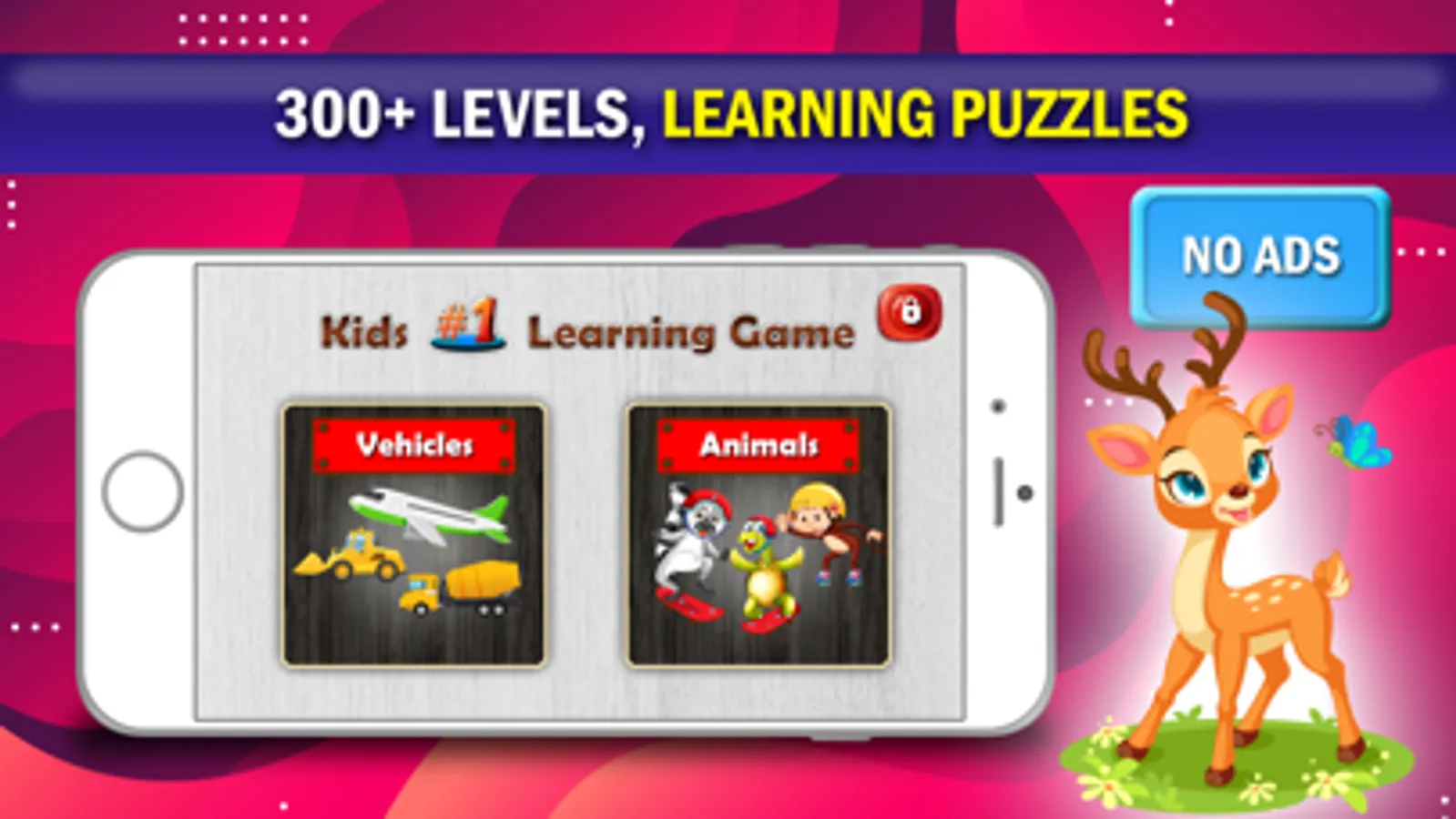 Toddler puzzle games for kids of all ages as we have a Variety of Animals, Food, Vehicles, Furniture, Tools and many more. New way of learning and teaching your kids that means the game is family - friendly and can be enjoyed by boys and girls with friends. So, we have something which fit them and will keep them entertained for hours.