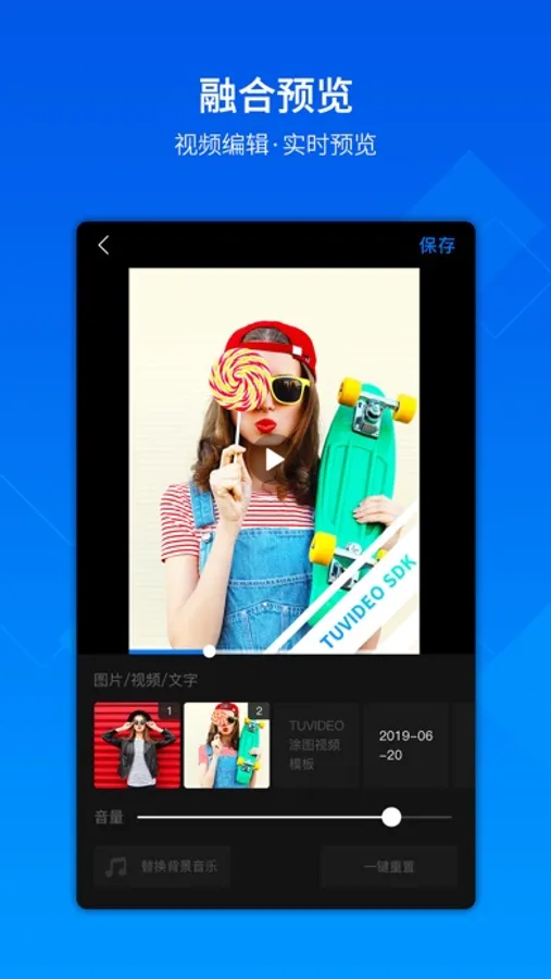 涂图Eva视频,主要功能为基于 Adobe After Effects 生成的视频模板,通过 Eva 使其可以在移动端显示,并在此基础上支持对模板中的素材进行替换(编辑),当前支持的素材替换(编辑)包括视频、图片、文字、音频。Eva 支持 Adobe After Effects 制作的绝大多数动画效果,解决了 Designer、Engineer、Product Manager们对于跨平台后引起的效果还原问题。