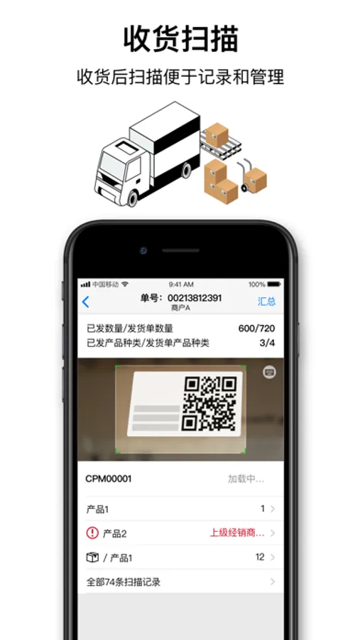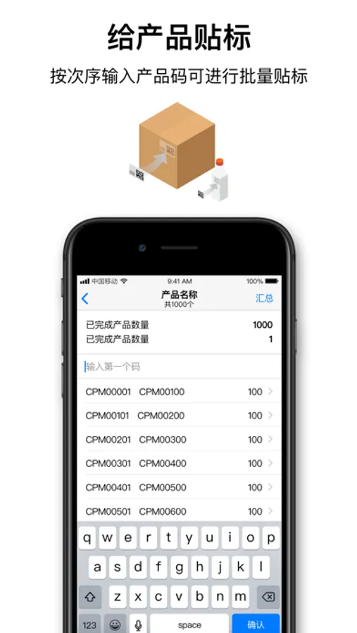 · 扫描包装箱码,快速完成整箱货物贴标;