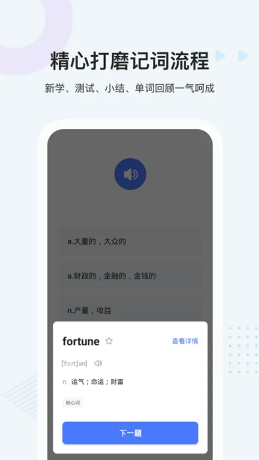 独特的算法策略,帮你判断单词掌握程度,保证单词的学习效果。
