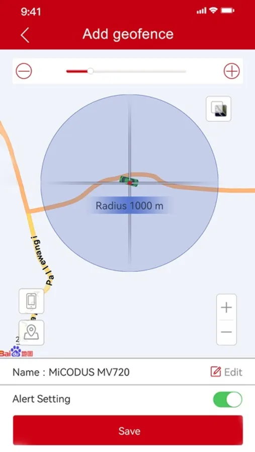 * Geo-fence to set a security area, APP will receive alerts when device enter or exit this area