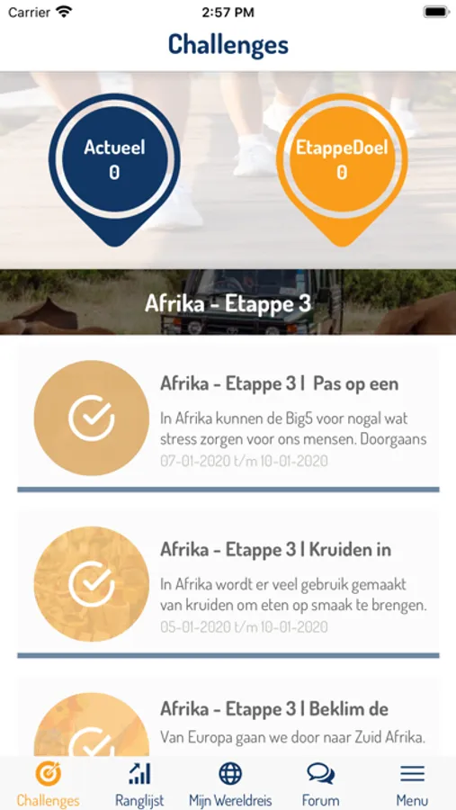 De reis gaat over meerdere etappes. Per etappe ga je ontdekken hoe gemakkelijk en leuk een gezonde leefstijl is, door soft-competitie, beloningen, en vooral resultaat! In elke etappe komen de onderdelen bewegen, voeding en ontspanning aan bod. Motiveer je teamgenoten, daag jezelf en anderen uit en heb de reis van je leven, voor de rest van je leven!