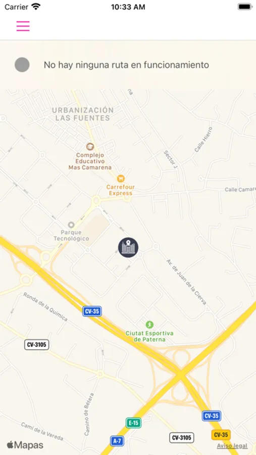 La aplicación nos permite hacer un seguimiento en tiempo real de la ruta, para conocer la situación del bus en todo momento.