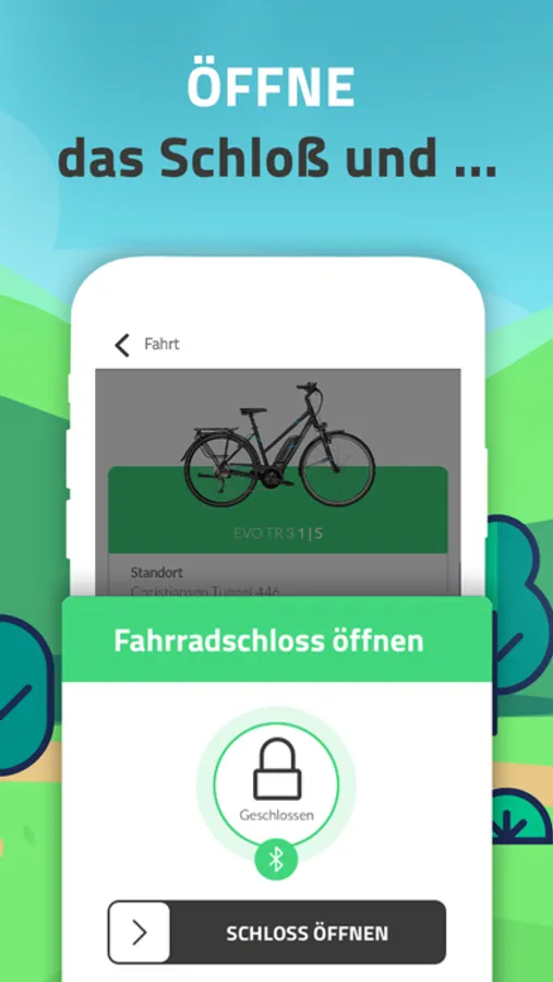 E-Bike-Buchung: Wenn Ihre Buchung beginnt können Sie mit der App die Tür der Abstellanlage öffnen und auch das Fahrradschloss der E-Bikes. Sie können über den gesamten Buchungszeitraum das Bike nutzen, jederzeit abschließen und über die App wieder öffnen.