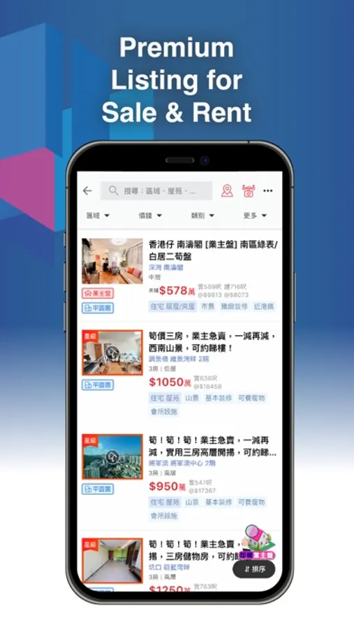 - 10K Listing: Able to look for both residential and commercial use property over Hong Kong Island, Kowloon, and the New Territories.