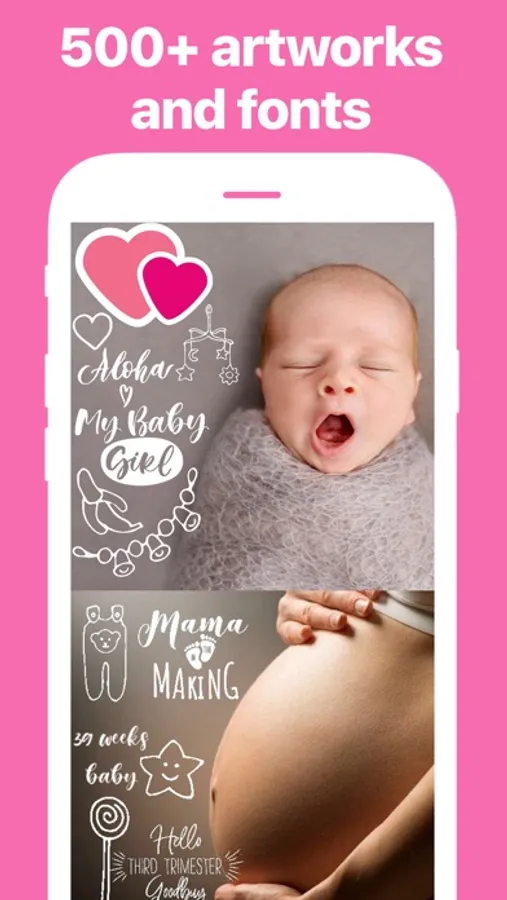 Through BabyArt, you can capture week-by-week photos of your baby bump, and your baby’s first kick, smile, word, and steps. By adding customized artwork, you can capture your baby’s milestones through written and visual descriptions, creating an unforgettable treasure.
