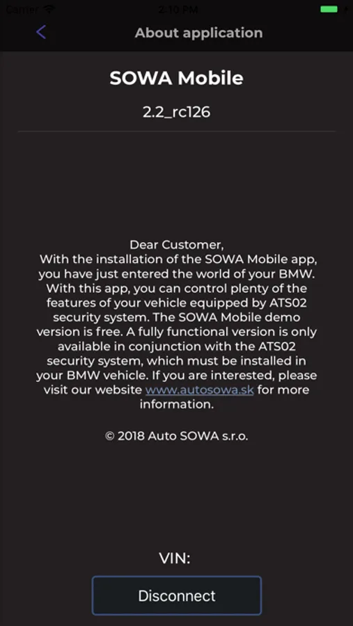 The demo version of Sowa Mobile app is available free of charge. Fully functional version is available only in conjuction with ATS02 module, which needs to be installed in your BMW. If you are interested about our system, please visit www.autosowa.sk for more informations or send us an email to info@autosowa.sk