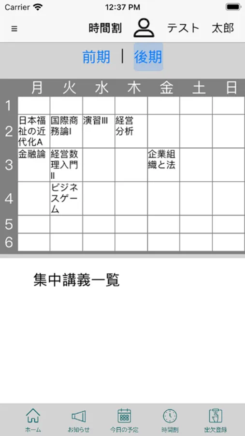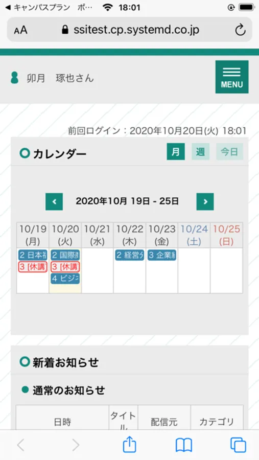 大学からのお知らせや休講、補講など情報を確認する事ができます。
