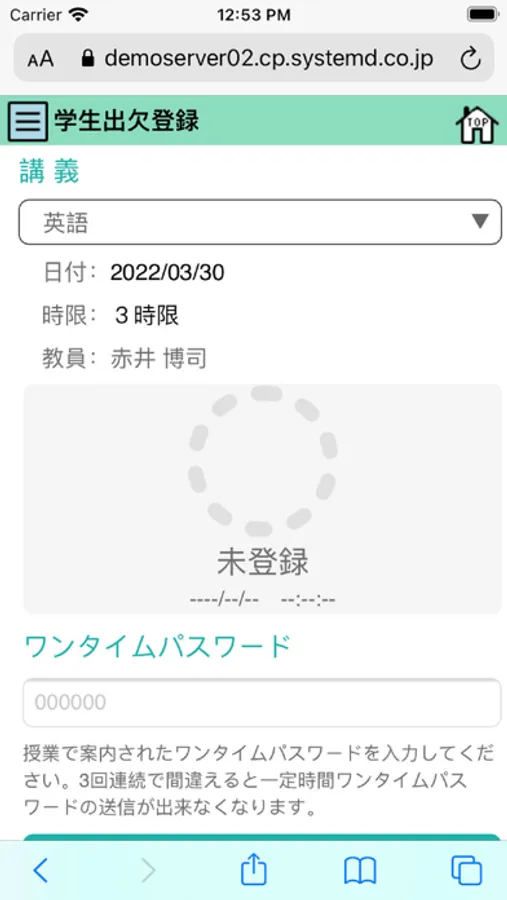 出欠登録にご対応頂いている大学様に限り、QRコードあるいはワンタイムパスワードを利用した出欠確認ができます。