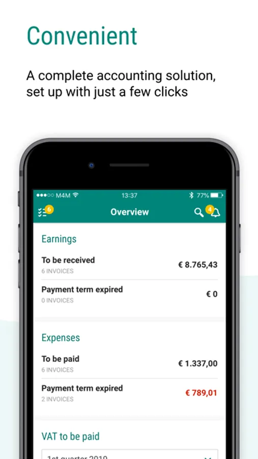 With Bookkeeping by ABN AMRO you can manage your finances in one place. You can send invoices, scan receipts and everything will be added to your bookkeeping. The App will always show you a complete overview of your finances.