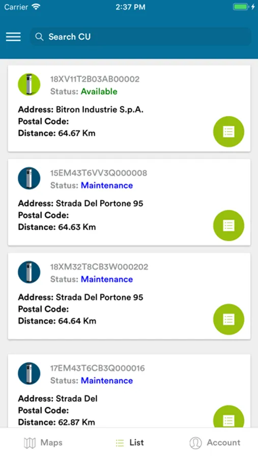 - mostrare un elenco di colonnine in ordine di distanza rispetto alla propria posizione