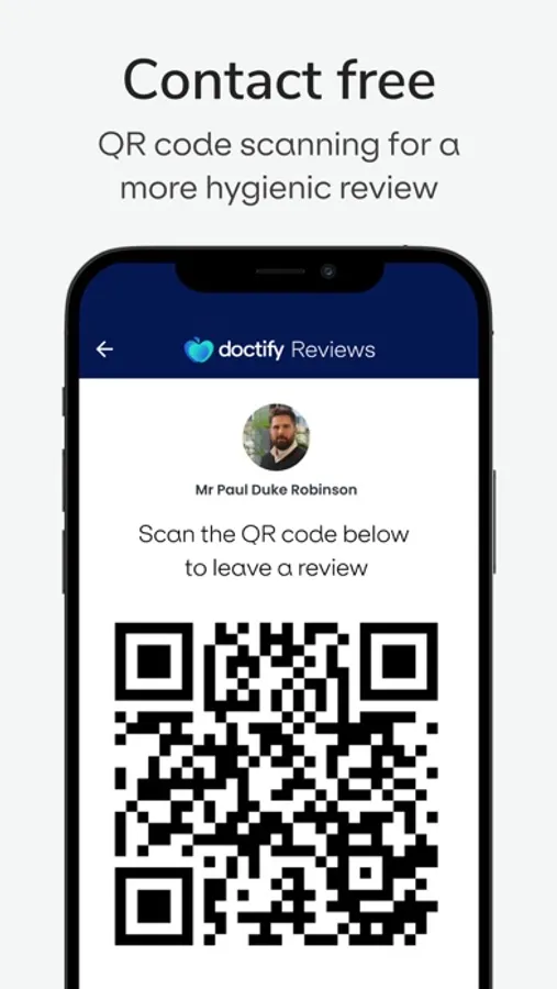 For the first time, we also support mobile phones as well in the case that a practitioner may opt to use the app to deliver 'no contact' reviews by allowing a patient to scan the QR code or entering their phone number to receive a unique review code by text.