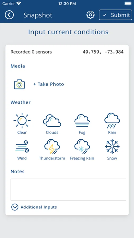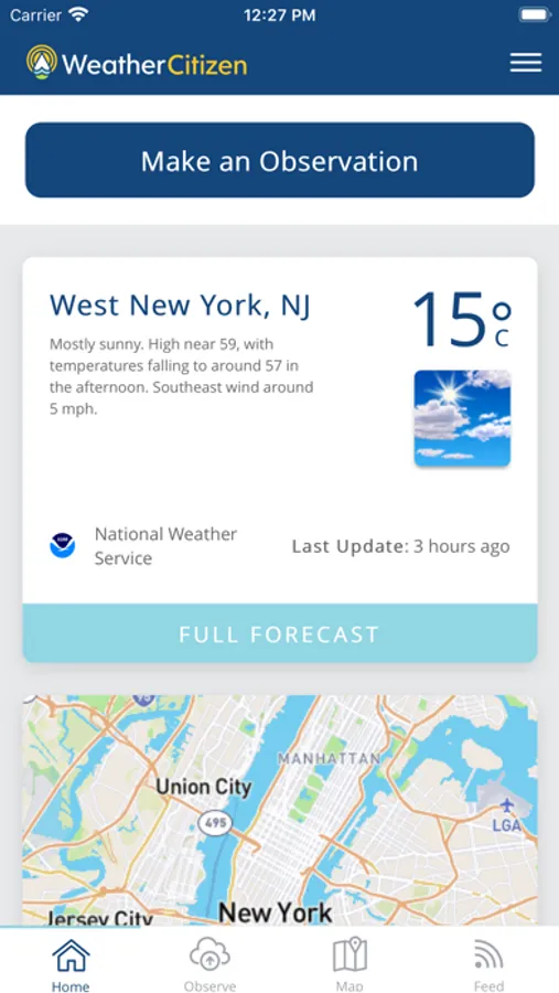 WeatherCitizen enables the collection, sharing, and analysis of crowd sourced weather observations from mobile devices. Observations can be collected directly from the phone’s existing environmental sensors, manual entry of current weather conditions, or the phone’s camera and microphone. Data can also be collected using Bluetooth-enabled sensors. These observations are uploaded to a cloud database, where they are