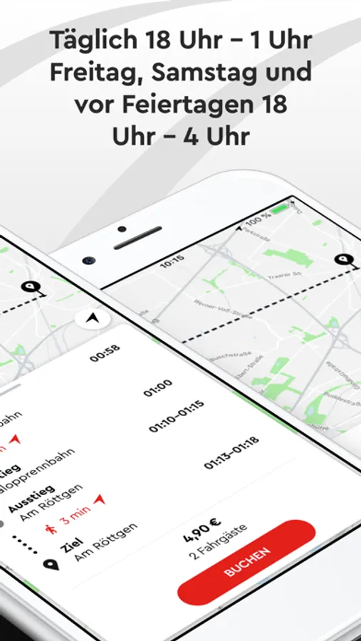 Wir navigieren Sie zu einer nahegelegenen virtuellen Haltestelle, an der Sie abgeholt werden. Bezahlt wird die Fahrt direkt mit der in der App hinterlegten Kreditkarte oder per Apple Pay.
