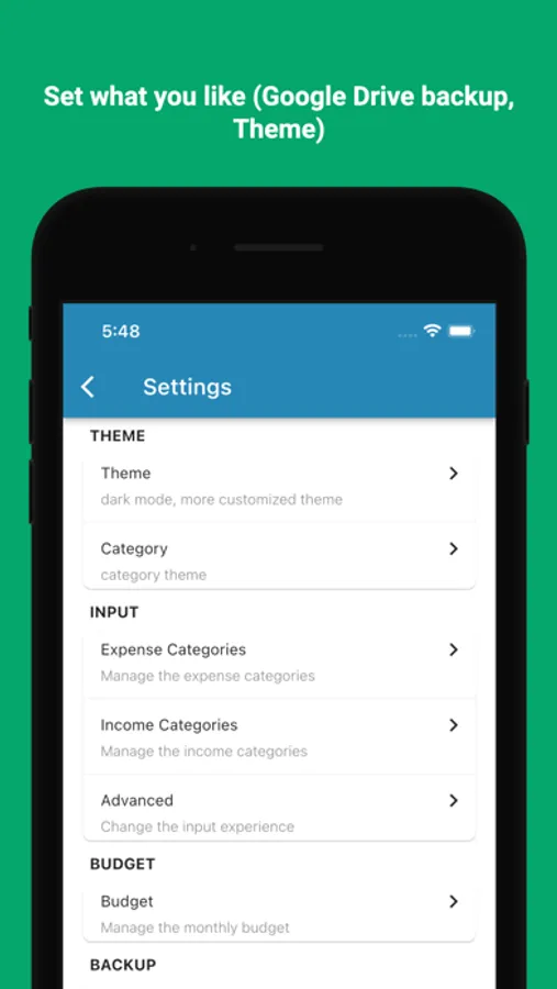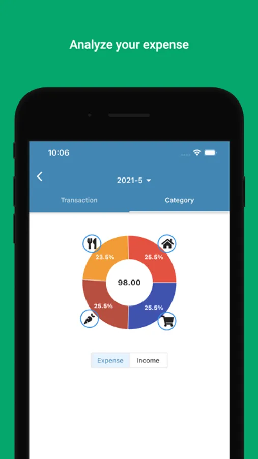 It's able to create multiple categories to track the expense and income. Name it and choose an icon, that's all. If you like simple categories, no problem, choose two or three as you like. Don't like the default categories? Change them.