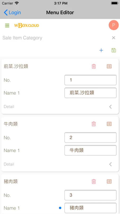 A web app for clients using the wBox POS system in Taiwan to manage their cloud menu.