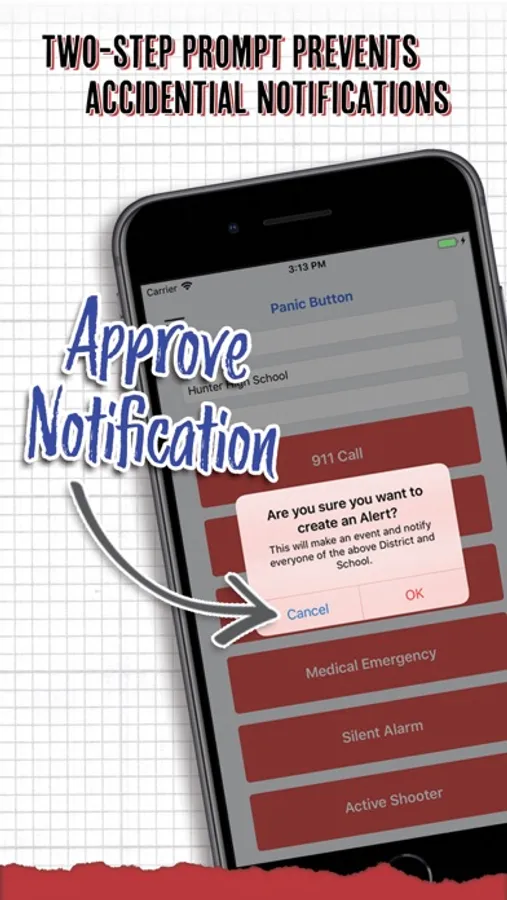 Easily enable all emergency notifications at the touch of your fingertips. Our two-step process eliminates any false notifications. Based on your school's needs you can create the following notifications: enable 911 call, lockdown, shelter in place, medical emergency, silent alarm, and active shooter. *Alyssa’s Law compliant*