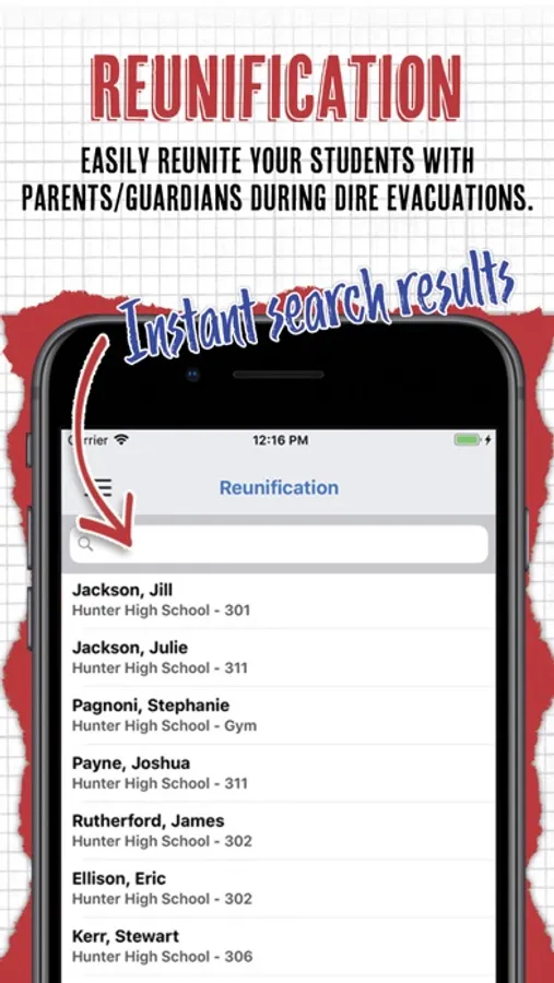 Easily reunite your students with parents/guardians during dire evacuations. District-wide notifications will be sent to parents/guardians with the location and time to pick up their child(ren). Quickly search and release each student saving time and unnecessary confusion.