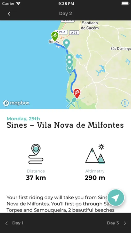 Downloading the app, you'll be able to navigate day by day following pre-loaded tracks, stay in touch with your guides and members of your group and view all points of interest of your holidays, from restaurants to hotels, museums and others.
