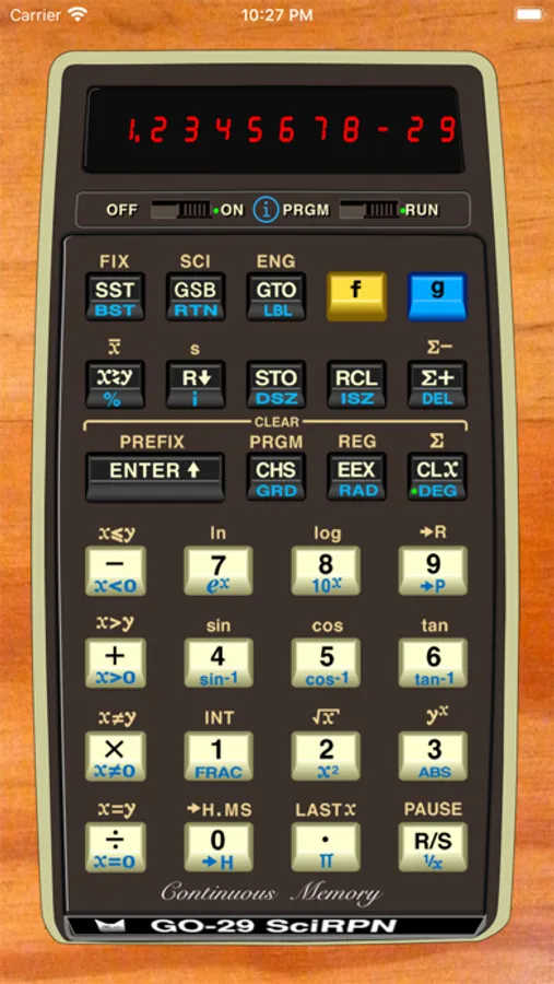GO-29 SciRPN closely simulates the venerable HP-29C Programmable Pocket Scientific Calculator from 1977. Virtually indistinguishable from the real item in operation, GO-29 is a powerful yet simple retro calculator.