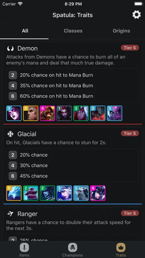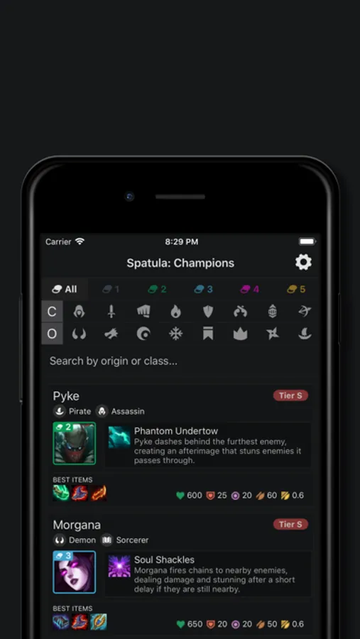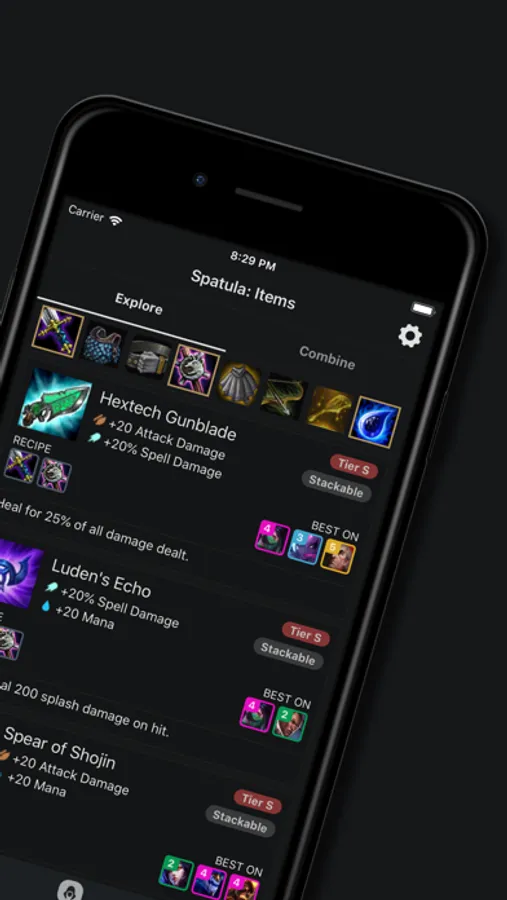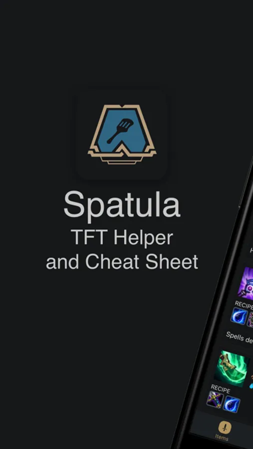 Spatula is the right TFT app for you, stop wasting time with alt-tabs and minimizing the game client to find out what items you should or can combine, have everything at the tip of your fingers. Spatula was made to make your life easier, here you can list the items, filter with the items you have on your inventory and find out quickly what items are possible to build, see what items that go well with every champion with the "best items" information, find out quickly what champions belongs to every class or origin (trait).