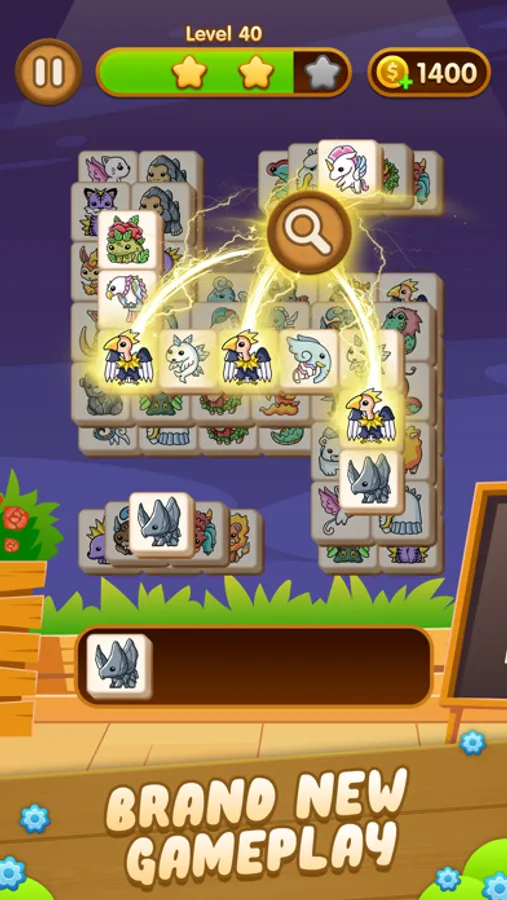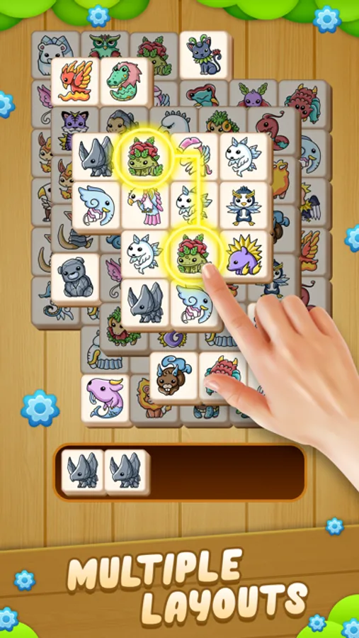 - Touch to select the mahjong tile and put it in the box, match pairs of identical animals (choose three of same tiles)