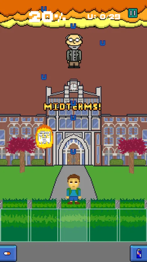 Tap on a tile to move your character. Use power ups to help you survive and collect units. Make sure your dropout rate does not reach 100% or you'll never see that diploma.