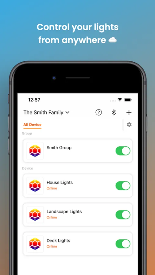 Cloud-based secure sign in. Control your lights from anywhere there is a network or cellular connection.