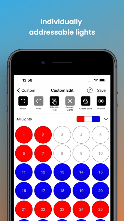 With our preset animations, you can create flowing patterns, fades, jumps, shifts and other fun or elegant movements.