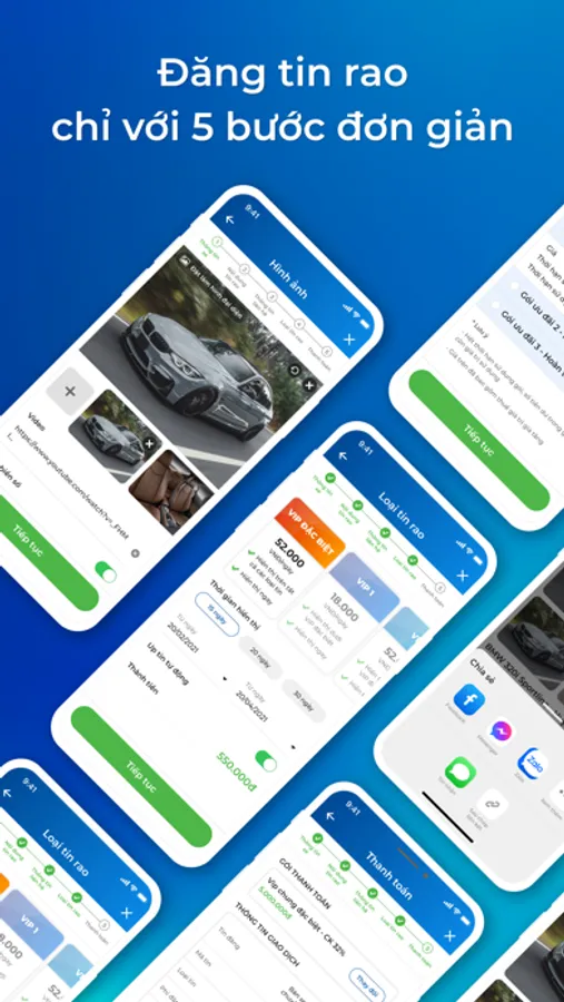 * Đăng tin nhanh chóng: Chỉ với vài thao tác trong chưa đến 3 phút, bạn đã có thể đưa chiếc xe của mình tiếp cận hàng triệu khách hàng tiềm năng.